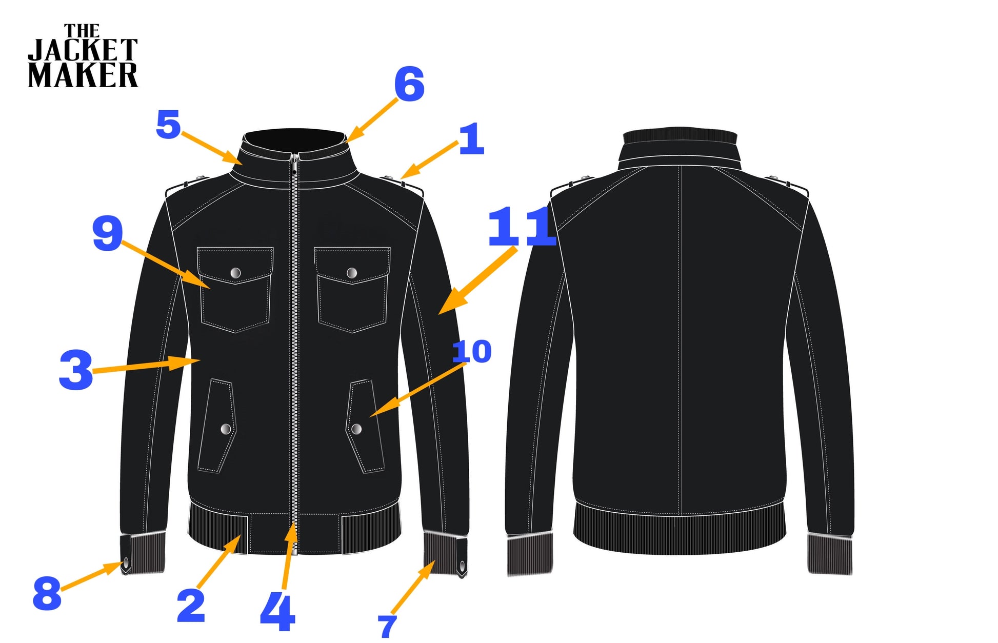 * 3) Outer Shell: thick layer Denim fabric (12-16oz)